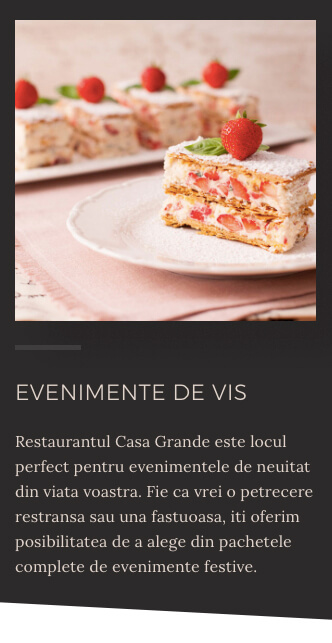 Restaurantul Casa Grande din Bacau este unic datorita mancarii delicioase, a serviciilor exceptionale si al locatiei perfecte, toate adunate pentru cea mai importanta zi din viata ta.