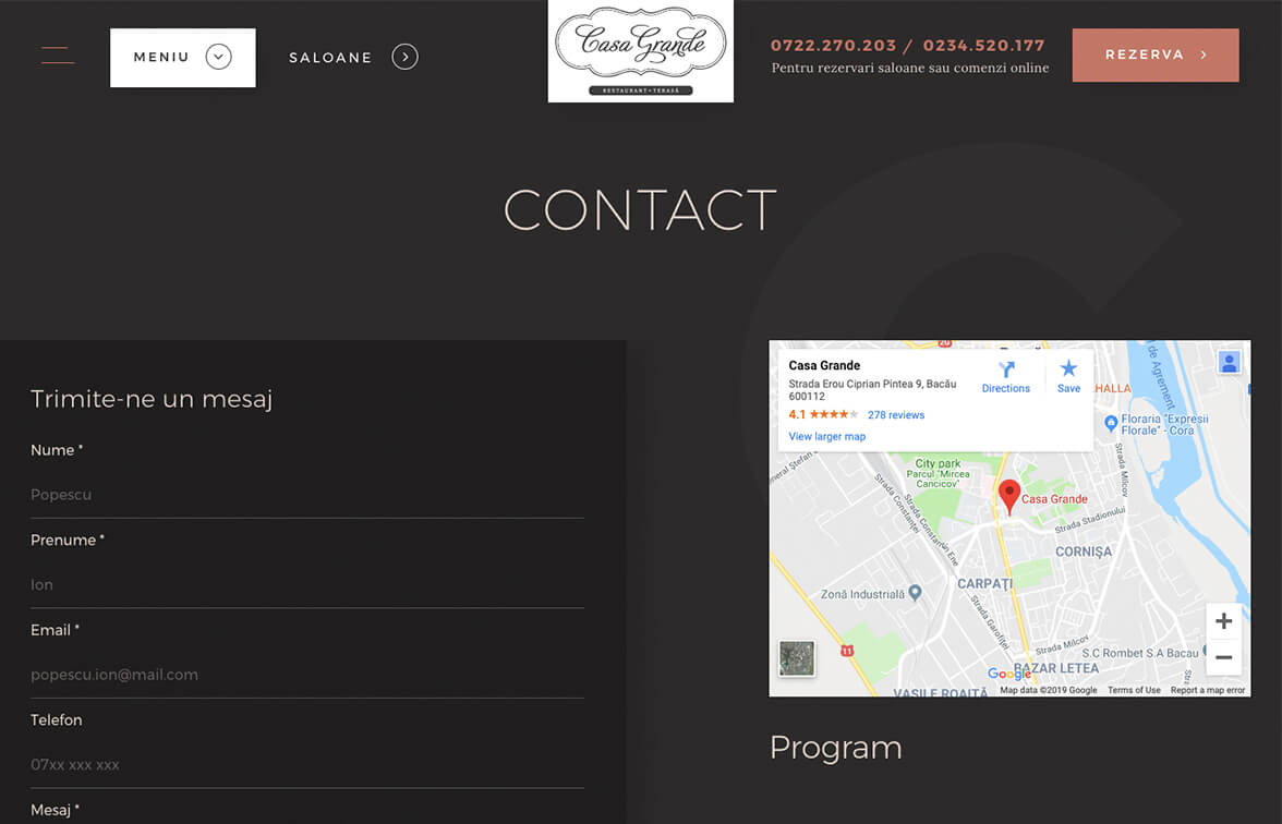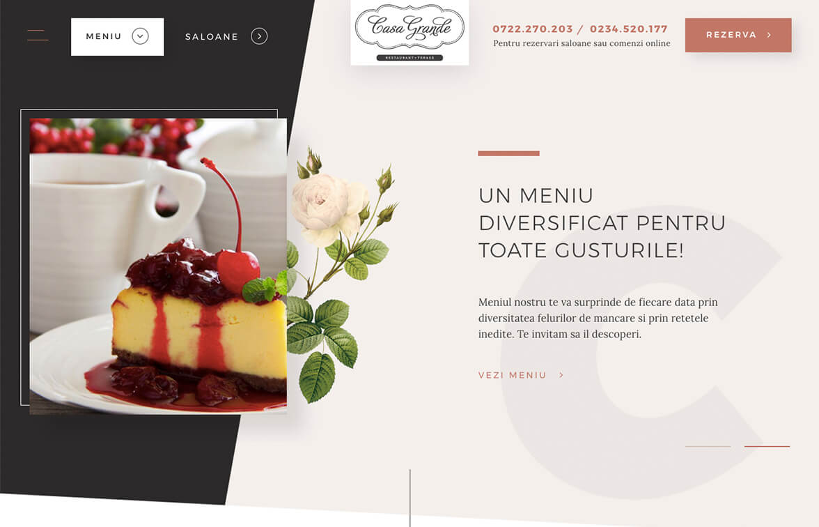 Casa Grande este un restaurant deosebit, de aceea, cand ne-au ales pe noi sa le construim identitatea vizuala, am considerat ca merita un website pe masura. Am condimentat structura simpla de parcurs cu cele mai creative forme estetice.