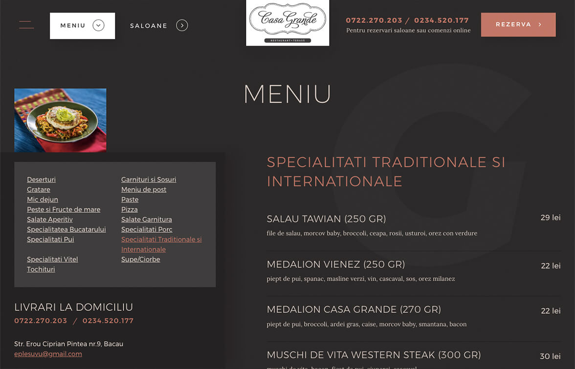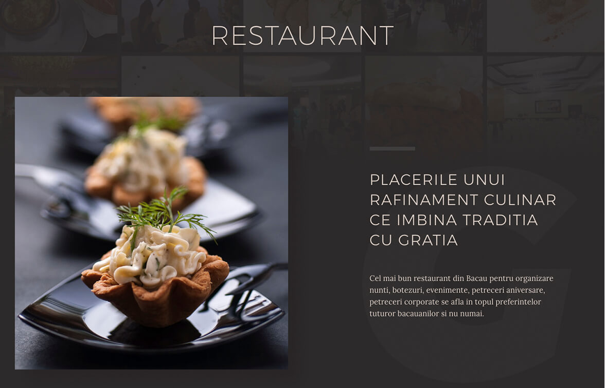 Experienta finala este una simpla, impune eleganta si rafinament. Pe langa toate acestea am ales, bineinteles, sa includem si elemente care sa-ti aduca pofta de mancare. Website-ul este user-friendly transformand fiecare click intr-o navigare placuta.